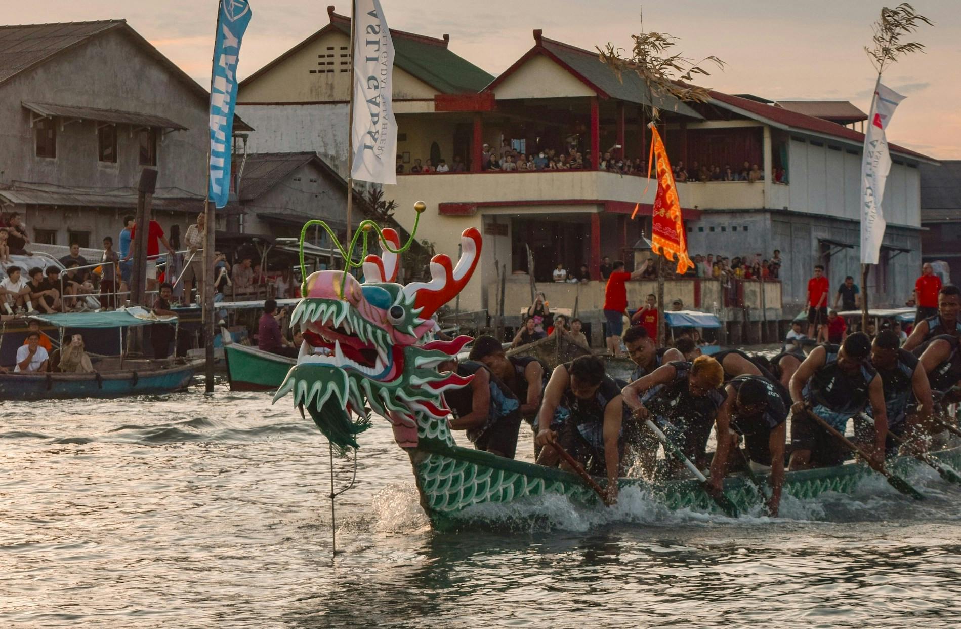 Since the inception of the festival, dragon boat races have been held with competing teams rowing elaborately designed dragon boats to the steady rhythm of beating drums.